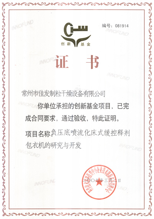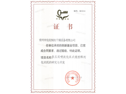 創(chuàng)新基金驗收合格證